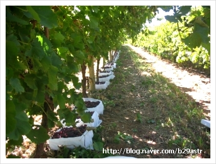 이런 태양 아래서 끝도 보이지 않을 만큼 길게 뻗은 포도나무들과 몇 시간쯤 씨름 하다보면 머리가 ‘띵’하고 어지럽다. 몸의 땀도 햇빛에 증발되어 버리는 것 같다. 아침, 점심 이라고 해야 숙소에서 급하게 만든 토스트뿐이니 잘 먹지도 못할 뿐더러 아침에 싸온 차가운 물도 2시간 쯤 지나면 따뜻한 물이 되어있었다. 게다가 화장실도 제대로 갈수가 없다.