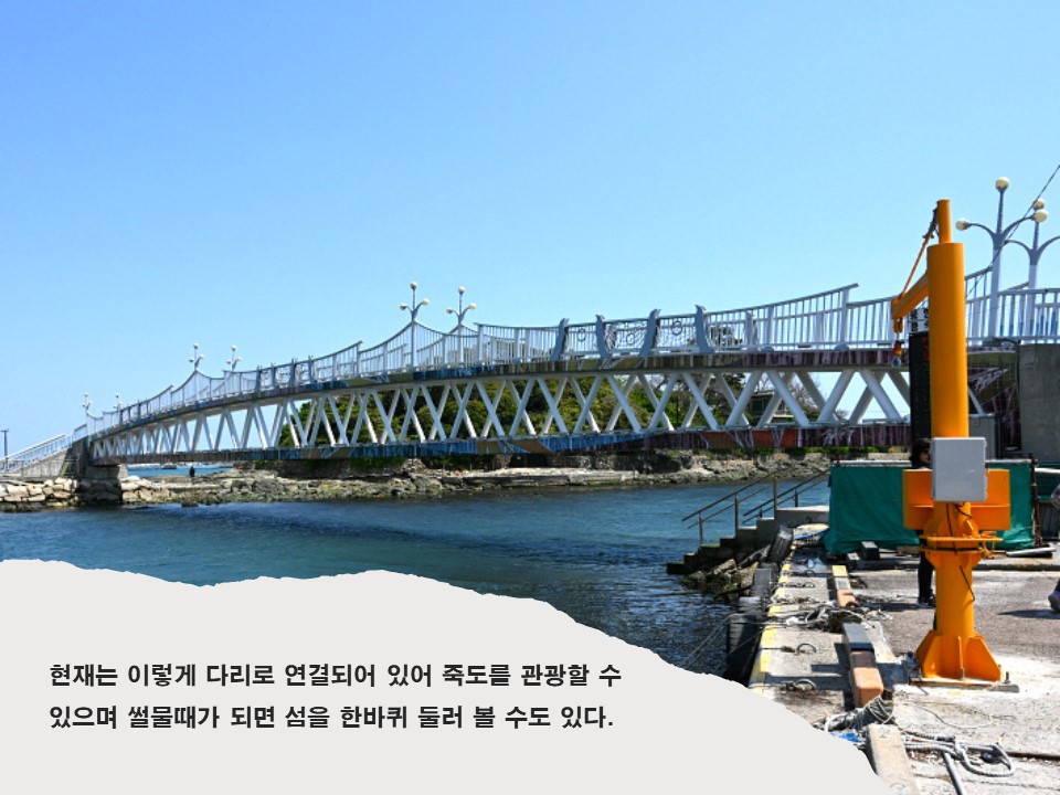 섬의 모양이 거북이를 닮았으며 예전에 섬에는 대나무가 많아서 죽도라고 불렸으며, 섬 중앙에 시원한 샘이 있습니다.