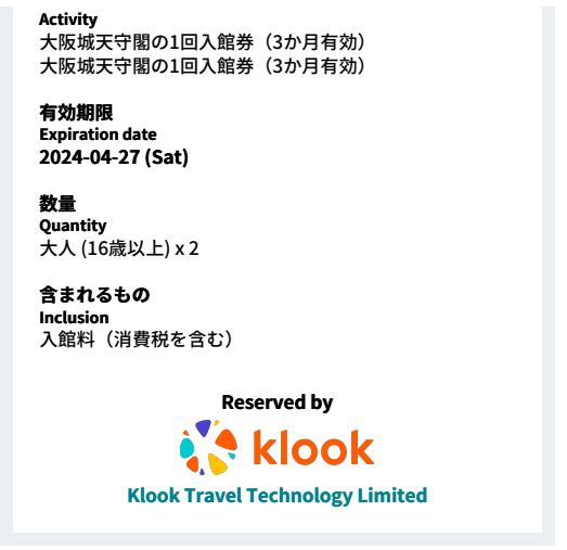 마지막으로 구매한 패스권은 오사카성 입장권입니다.